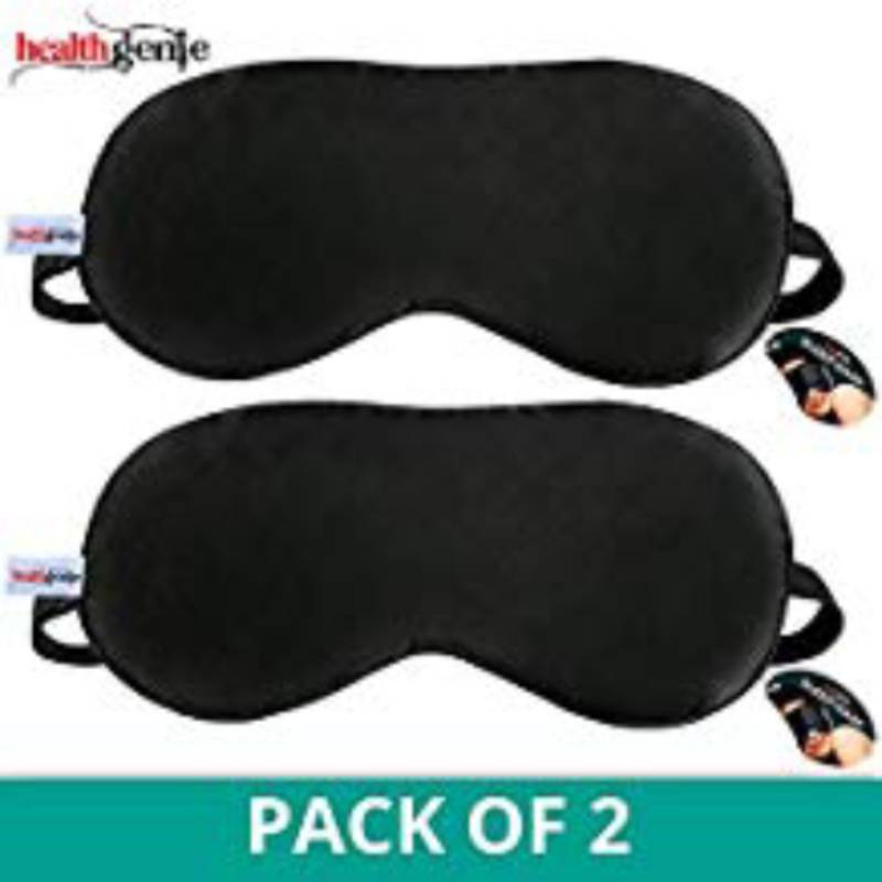 Healthgenie 100% Silk, Super Smooth Sleep Mask with Adjustable Strap and Blind Fold Eye Mask (Black) – Pack of 2