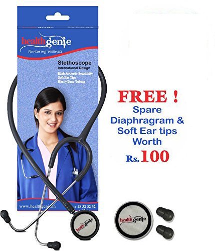 Healthgenie Dual Aluminum Non Chill Stethoscope HG-201G (Grey) has soft ear knobs which makes sure you do not strain your ears or foster any other kind of problem inspite of using it consistently, designed for adults. This Dual Head Stethoscope comes with aluminium chest piece with exclusive diaphragm that offers the convenience of listening to the heart, lungs, intestines and various other internal sounds accurately.